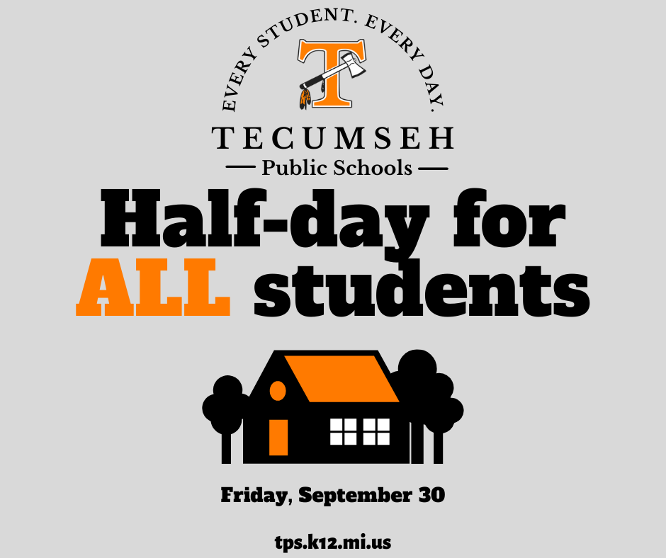 Don't forget Friday, September 30, is a half-day for ALL students!